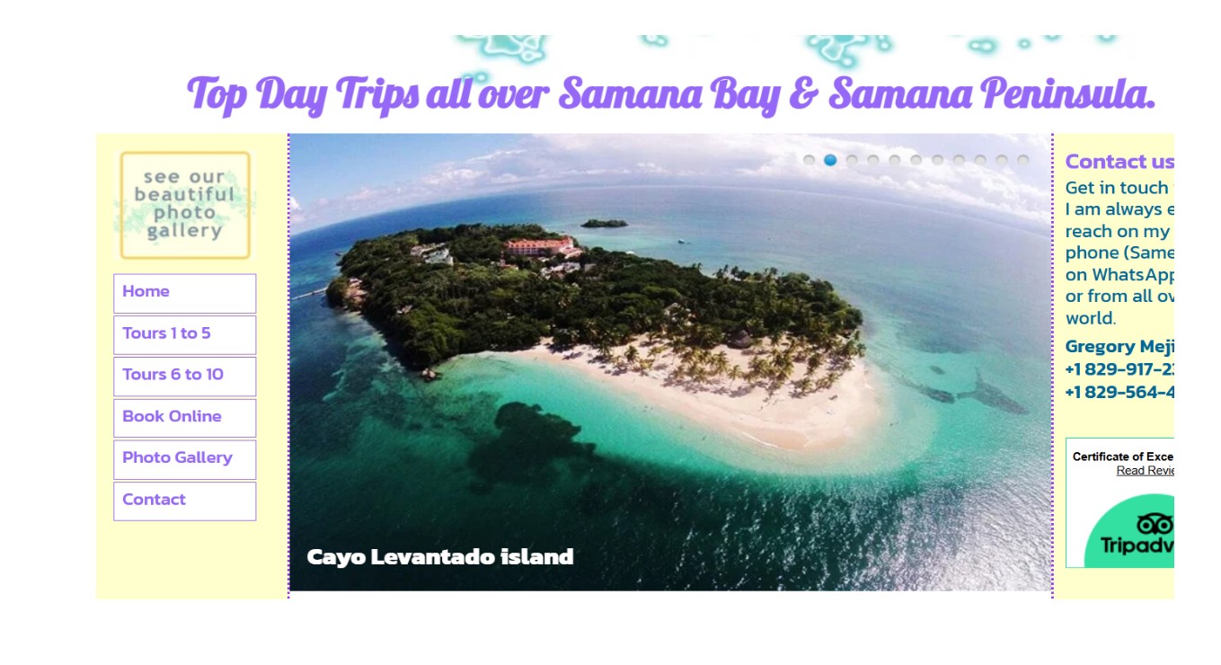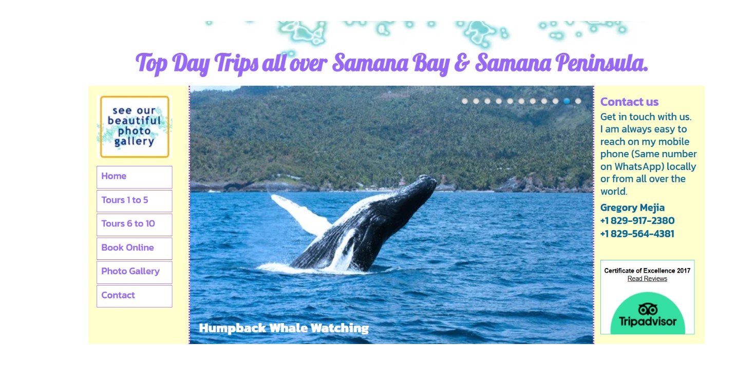 Rekonèt nan jaden nou an pou plis pase 20 ane ak ak revizyon ekselan nan konseye vwayaj, nou ofri randone ak Tours nan Bay la nan Samaná ak nan tout penensil la Samaná pou gen tout pouvwa a nan otèl ak pasaje kwazyè.